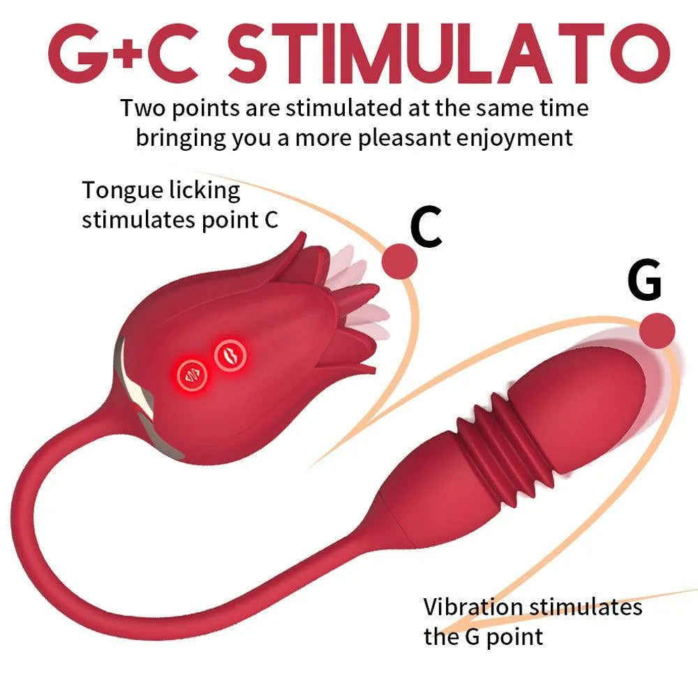 3-in-1 Licking Clit Rose Toy With Thrusting Egg Vibrator
