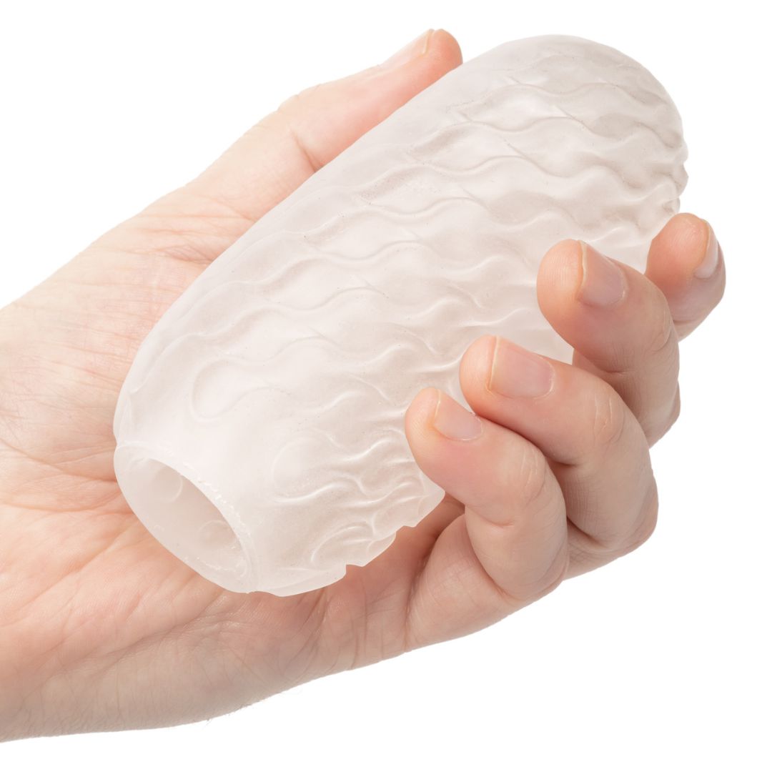 Double your pleasure with this ultra discreet reversible stroker. Tucked away in a sleek, unmarked white storage case, the soft, textured material of this stroker lets you flip it inside out. Are you in the mood for soft ripples or teasing nubs?