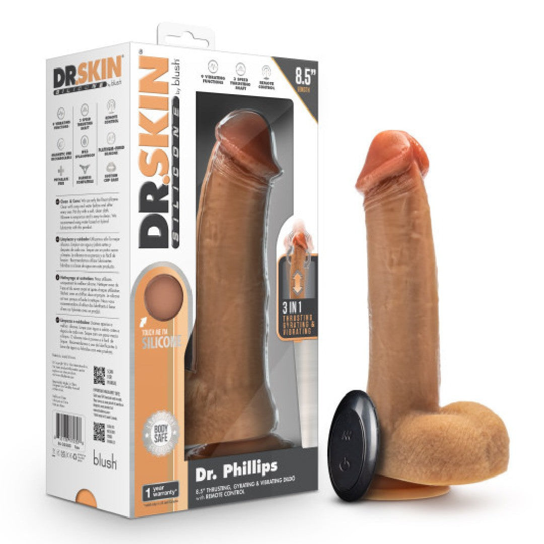 Prepare to live out all your naughty doctor fantasies with the thrusting, gyrating, vibrating Dr Phillips dildo! With a satisfying 6.5-inch insertable shaft and a powerful thrust, you can use the wireless remote control and powerful suction cup to let this doctor pound you - hands-free!