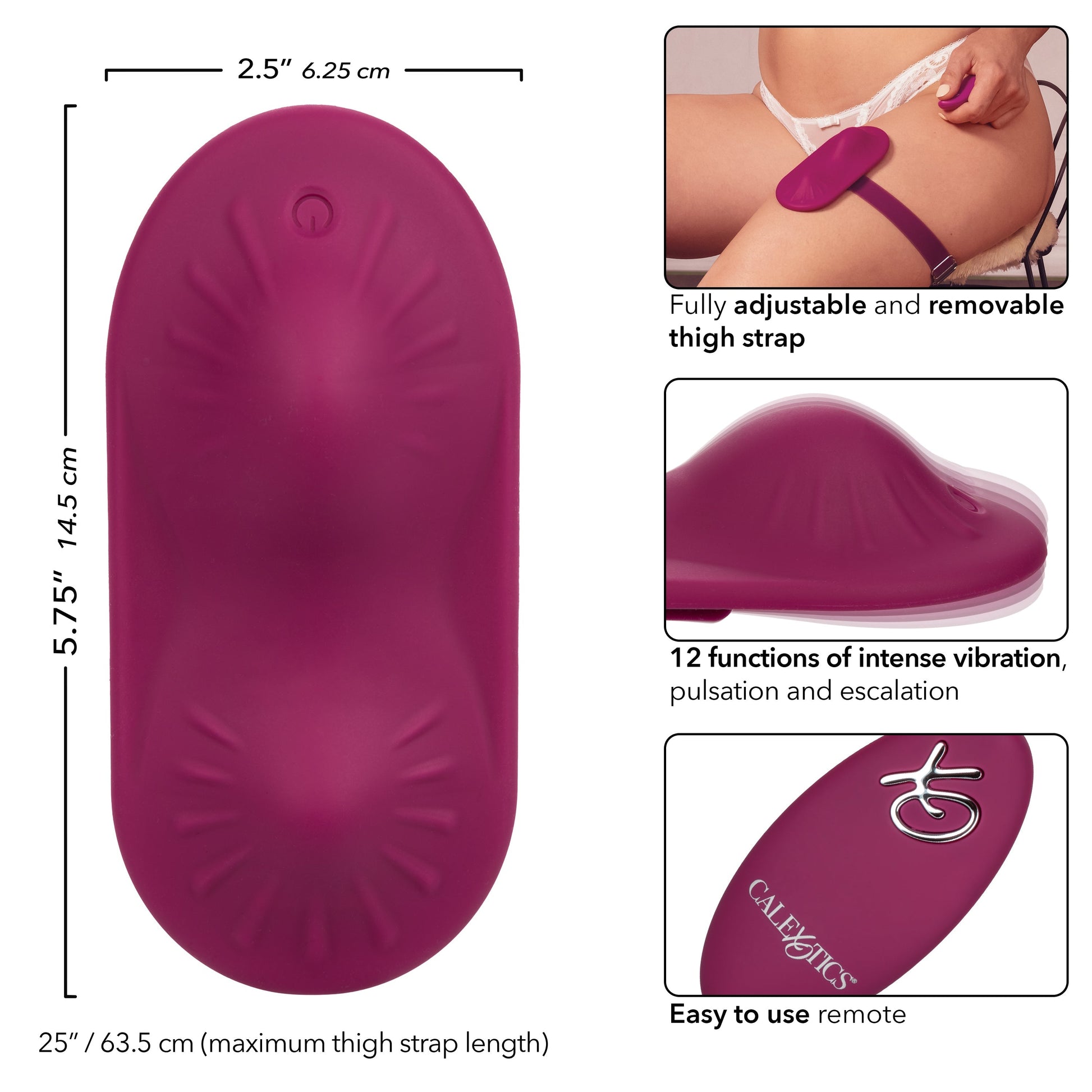 If you love a good grinding session, you will adore this Dual Rider Grinding Pad. With the stretchy straps, you can attach it to your partner's thigh, a pillow or anywhere else you love to get your hump on! Two vibrating ridges are going to snug against you so you can have a penetration free, intensely orgasmic experience. The wireless remote control lets you control the vibrations without groping around for buttons, or hand it to your lover and let them control your pleasure.