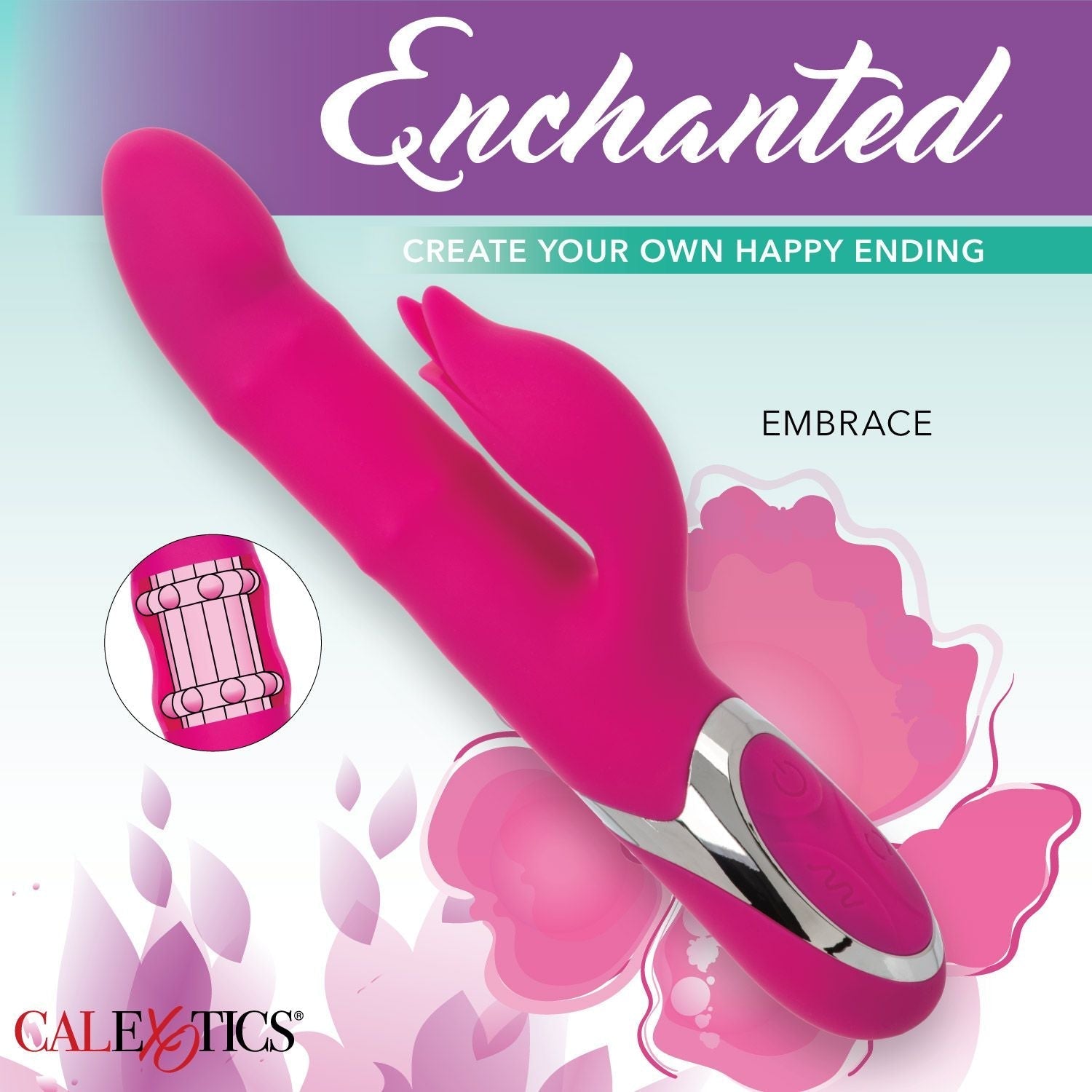 Discover the ultimate pleasure of blended clit and g-spot orgasms with the Enchanted Embrace Rabbit! Made from high-quality silicone, this rabbit features a double row of beads in the shaft for intense stimulation, while the flickering clit tongue provides precise and satisfying sensations externally. This is a fantastic bunny for anybody looking to level up from a beginner vibe or who wants more intense sensations than just vibration alone.
