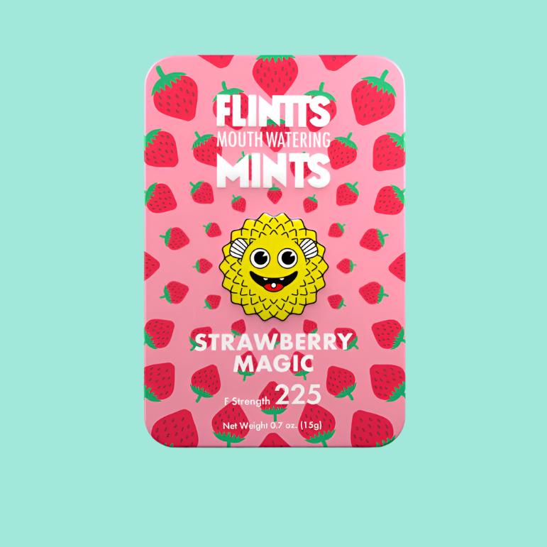 Strawberry Flavored Flintts mints are a unique and tasty solution for dry mouth. Refreshing, sugar free, and not too sweet, they create a gentle sparkle and mouth-watering effect for juicier oral experiences.