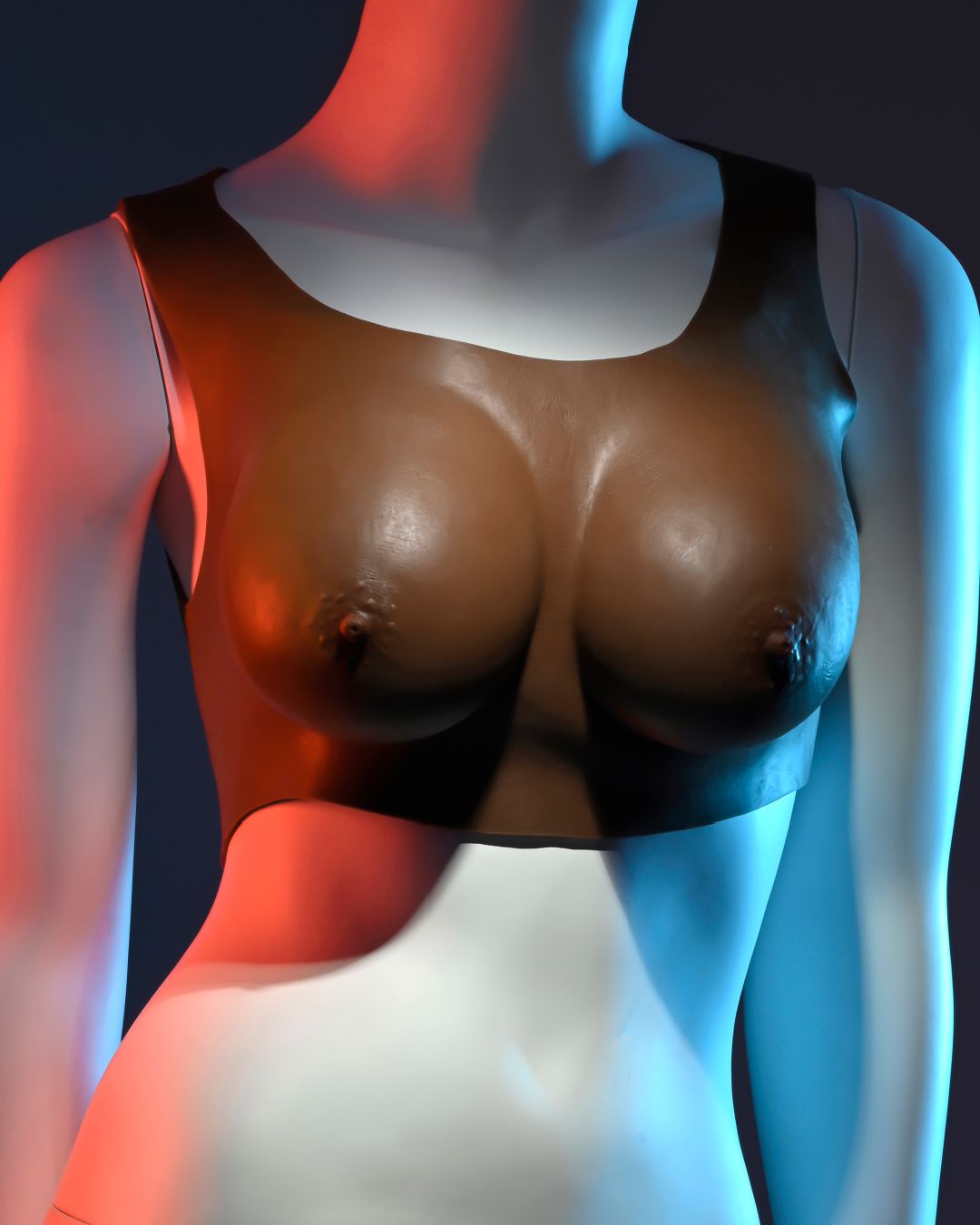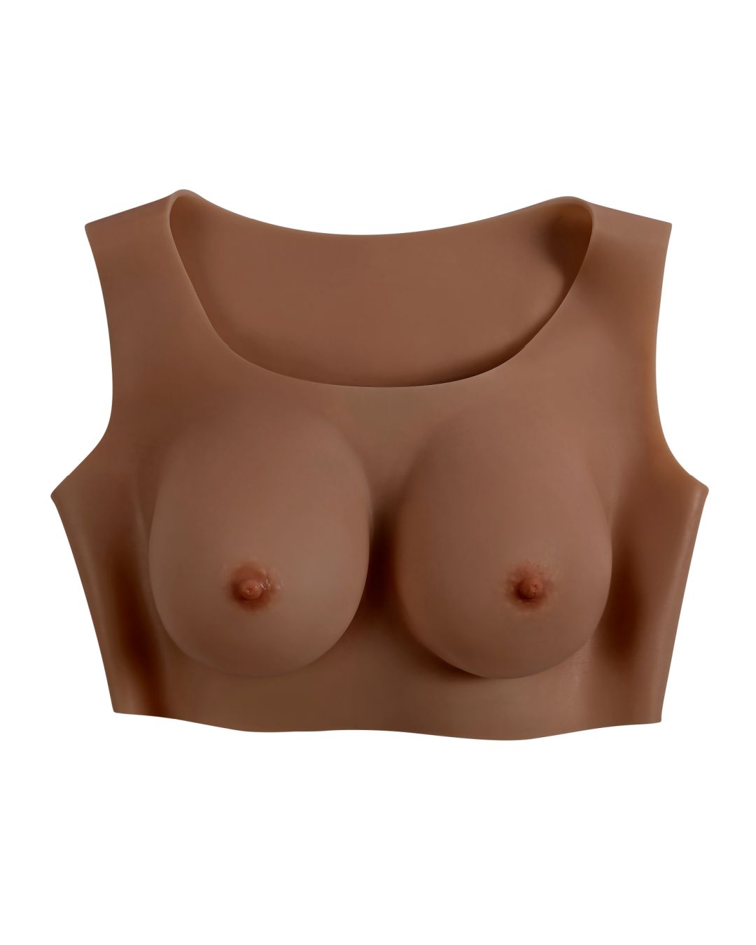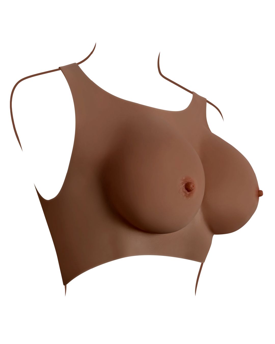 Lifelike and realistic, these wearable C cup breasts in deep chocolate skin tone are soft and yielding to the touch, designed with a natural shape and sway that looks great under clothing. The easy to put on vest design makes these enhancements super comfortable for a confident experience.