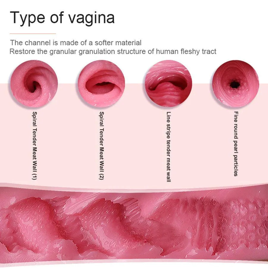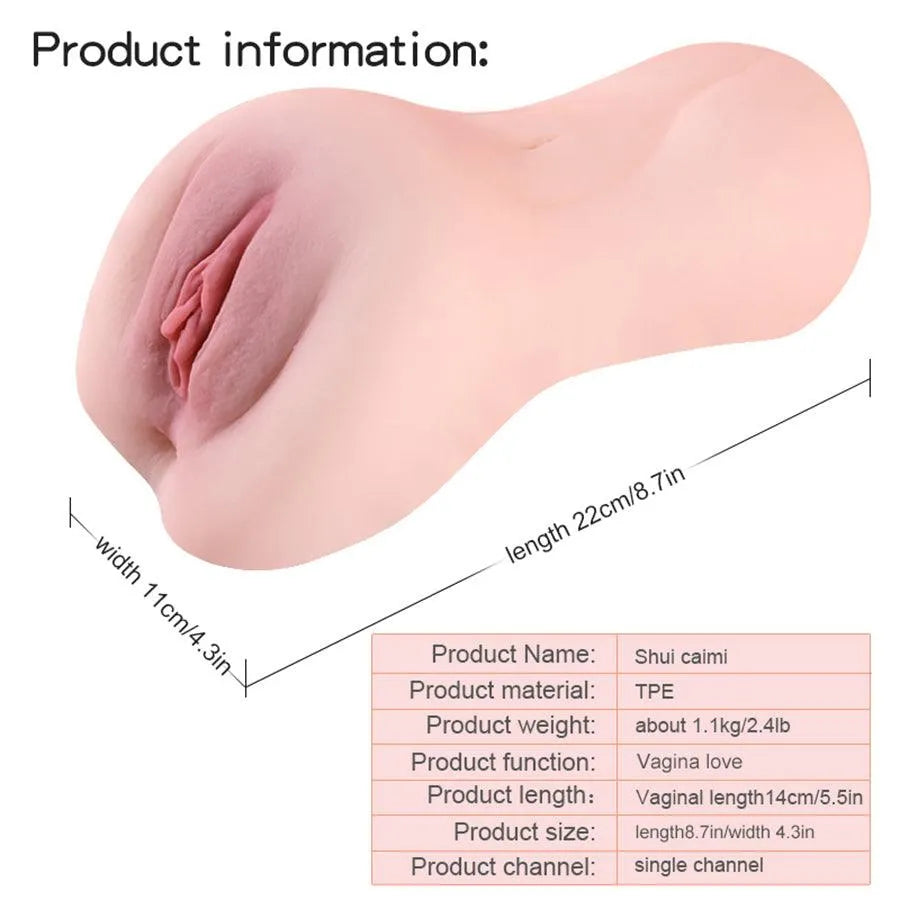 This is our remarkable pocket vagina, meticulously designed to replicate the real thing. Crafted with top-grade TPE material, this pocket vagina guarantees exceptional elasticity and a luxuriously soft and comfortable feel. Rest assured, it is entirely safe and free from harmful substances like phthalates. With its innovative waterproof design, this exquisite pleasure toy is perfect for indulging in solo male pleasure. Now, let's delve into the unique features of this extraordinary product: