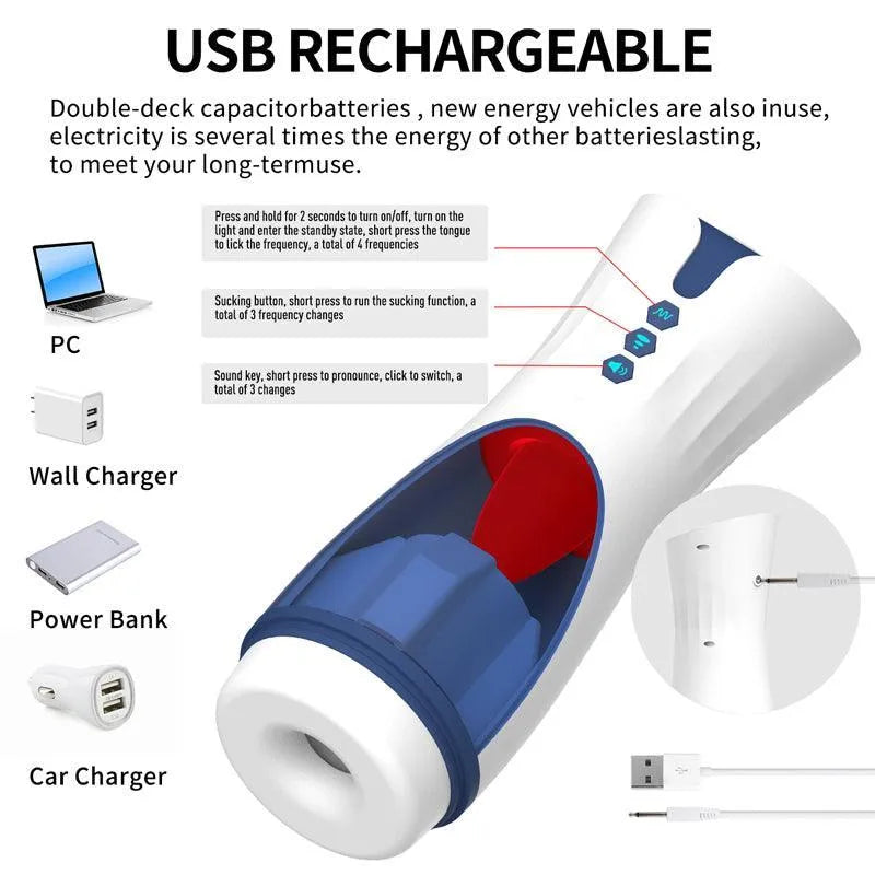 Of course, it's the soft tongue, deep into the throat and tongue licking. It's a squeezing feeling of one in and one out. The material is safe and is not prone to tearing after multiple uses. Smart heating and erotic voice interaction will definitely make you unforgettable and loved it ever since.