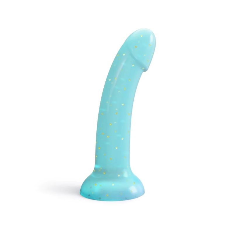 This gorgeous glittery dildo is ready to tease and please with its smooth shaft and large bulbous tip. Perfect angled to hit your sweet spot