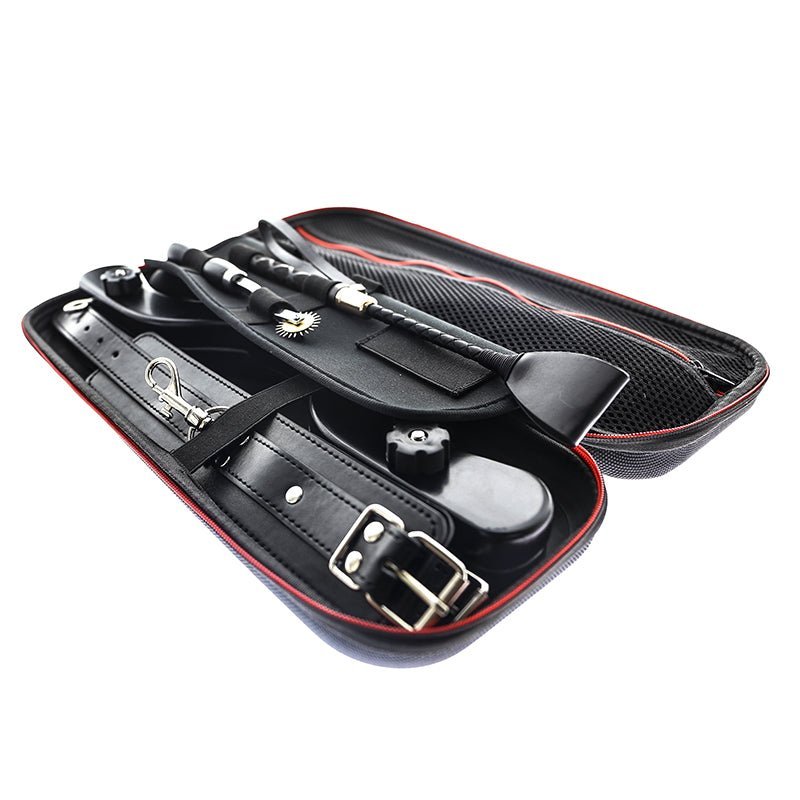 Femdom Set Humbler. Including specially made carry case, one humbler, a set of ankle cuffs, one whip, one crop, one ball gag, one wartenberg pin wheel.