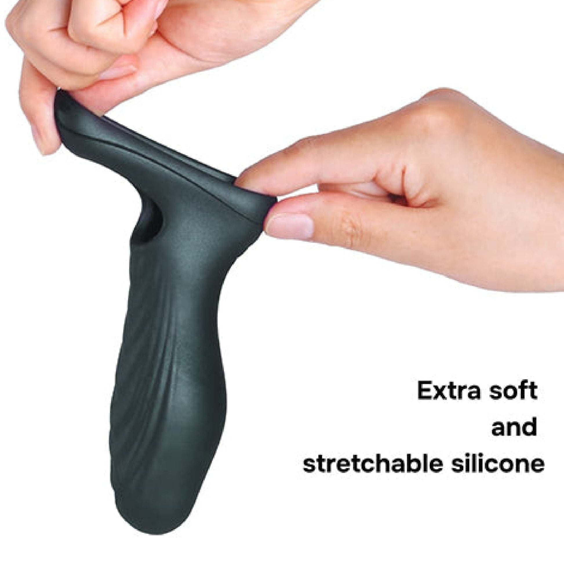 Ryzer gives you and your partner the best of both world. For your partner, you'll feel thicker, longer, and hit all those sweet spots with the textured silicone extender. For you, internal ridges stroke your shaft with each thrust. A hole at the tip of the shaft creates extra suction for you and lets your spunk drip out for a satisfying climax.