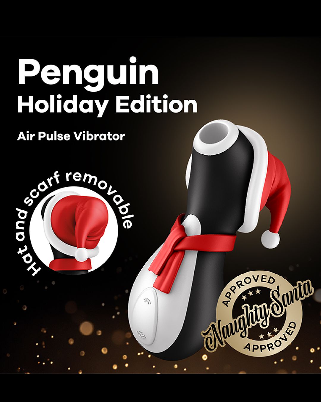 This adorable Holiday Penguin packs some serious power with air pulse technology that stimulates your clitoris by surrounding it in pulsating waves of air. This Penguin is a perfect introduction to this kind of amazingly intense, pleasurable stimulation and adorable Santa hat and scarf are fully removeable
