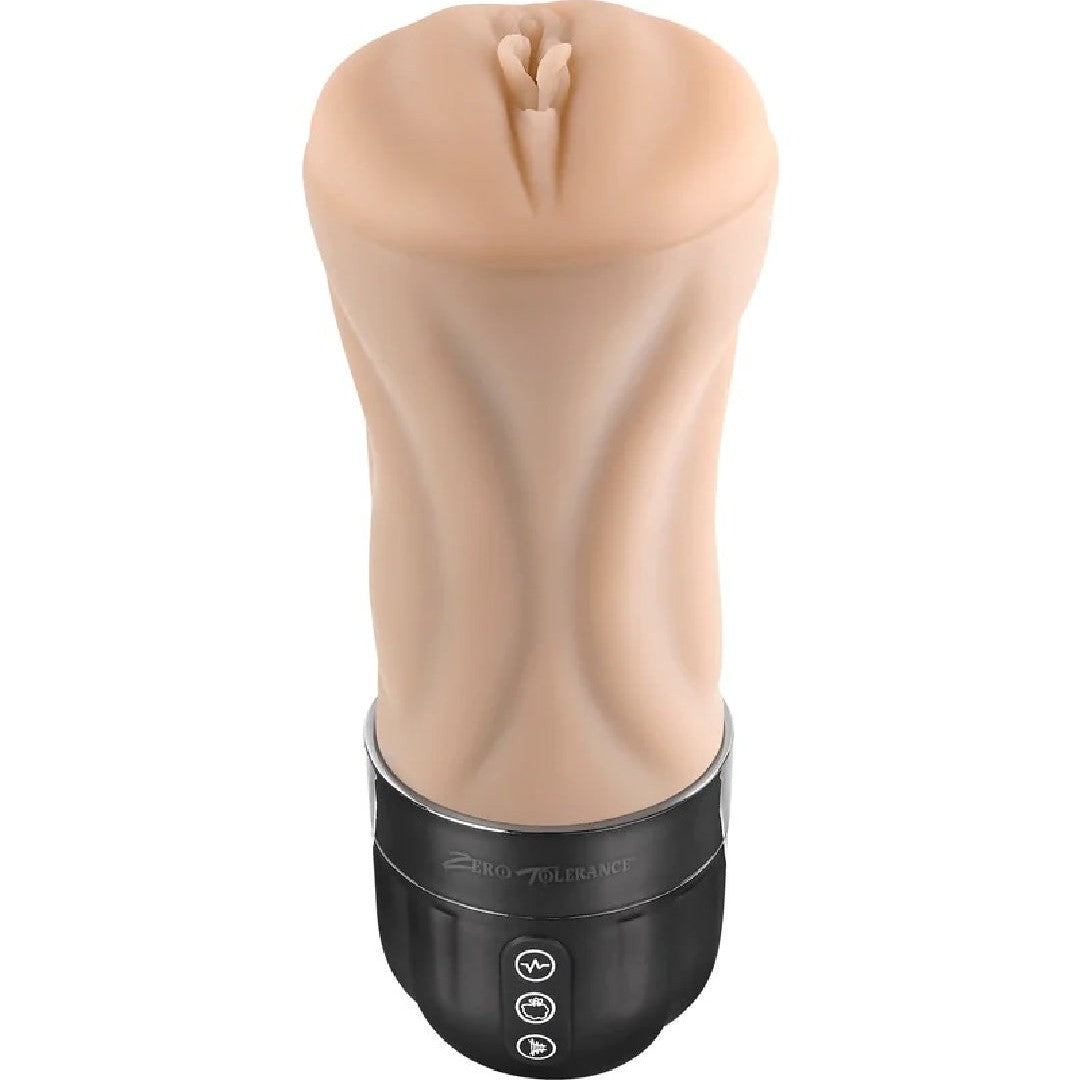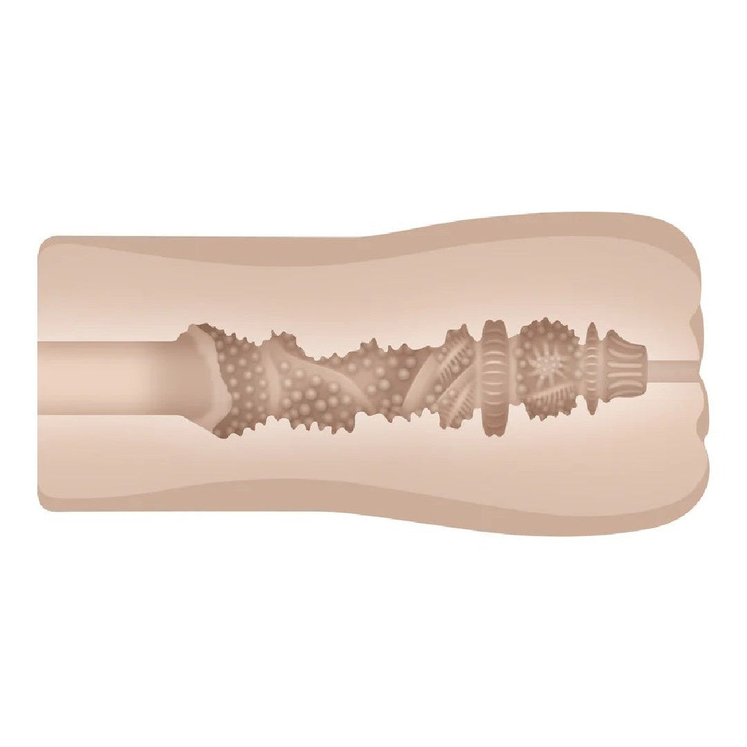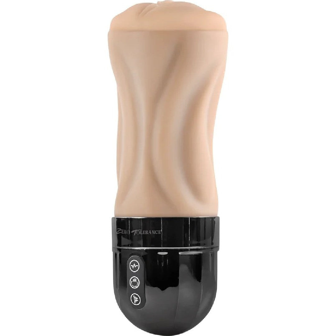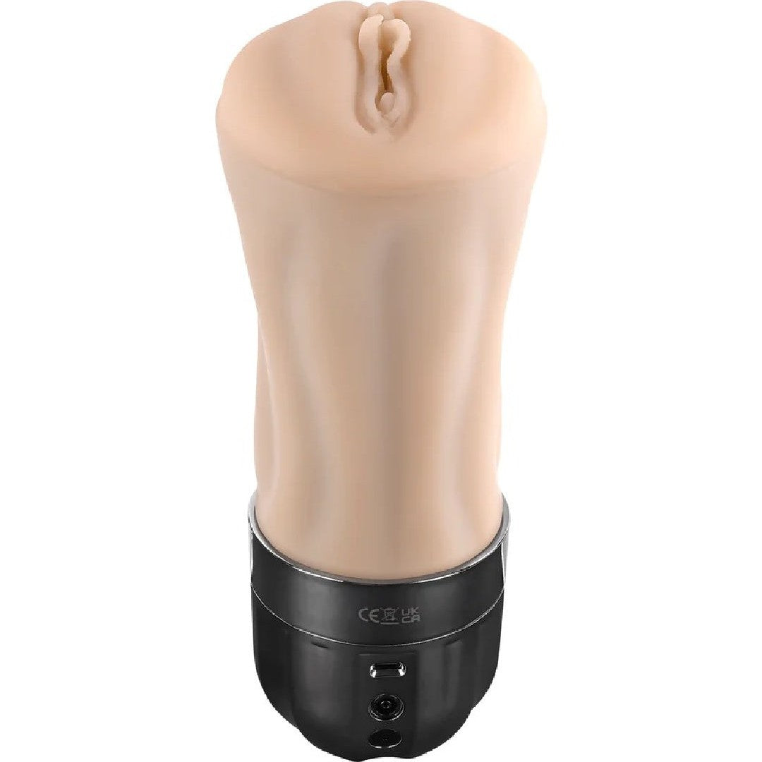 This Tight Lipped masturbator takes the idea of a Fleshlight-style canister stroker and makes it even better. The entire length, up to the controls, is covered in beautifully realistic feeling, lifelike vanilla-toned material you can stroke and caress as you thrust deep inside the textured pussy. Inside, you'll feel 10 vibration speeds and 5 sucking intensities to bring you to intense orgasm time after time.