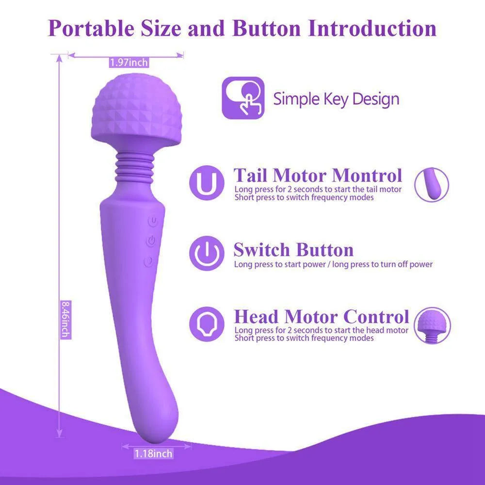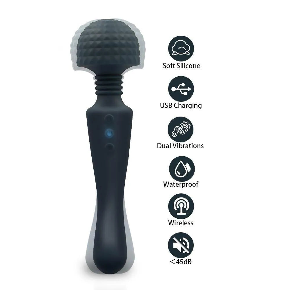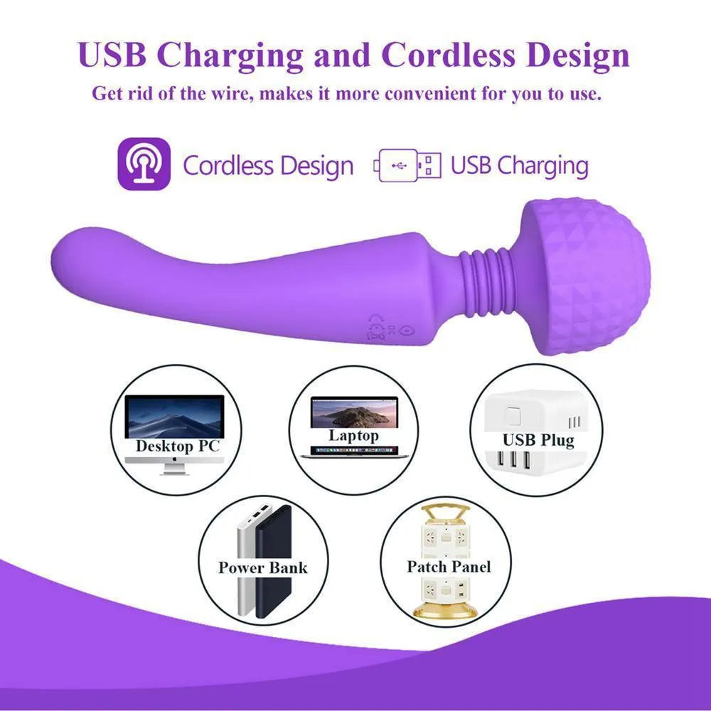 【Multifunctional Integration】Designed to cope with modern-day standards, a USB cable allows you to charge through a PC or a Plug, you will experience 2 hours of powerful usage time with full charging. The big head can be used to massage your body, or you can manually hit the sore parts of the body. According to ergonomic principles, the other side can directly reach the G-spot of a woman's vagina, and simultaneous vibration of both heads can create multi-point stimulation.